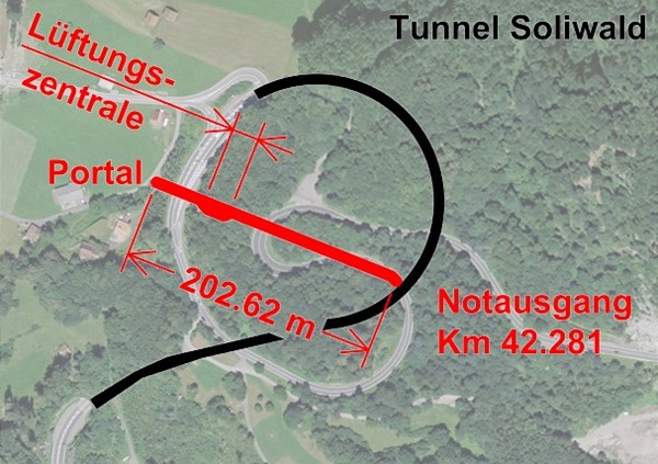 Comme les autres tunnels dans l’Oberland bernois, le tunnel de Soliwald a également été équipé d’une galerie de sauvetage.