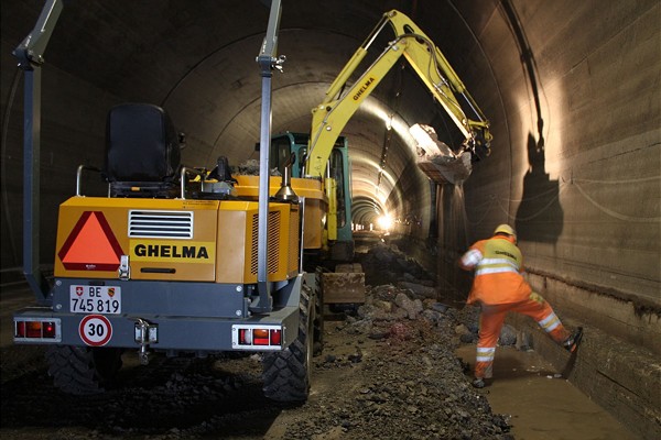 Travaux de réfection dans le tunnel de Rugen en 2015: un tube est resté en fonction en mode bidirectionnel pendant que l’autre était en travaux.